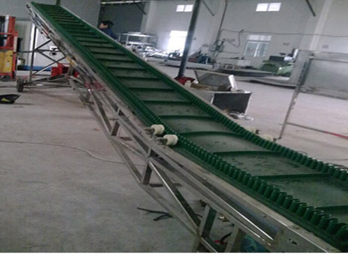擋邊帶由基帶、擋邊和隔板組成,基帶外觀同曾通輸送帶,但橫向剛度更大:擋邊為波浪狀:陋板按其不 的斷面可分為T型、C型和TC型。T型適用于傾角β≤40°場合,C型適用于傾角β>40°且物料流動性較好的場合,TC型適用于傾角β>40°,物料粘性較大,粘度較大的場合。